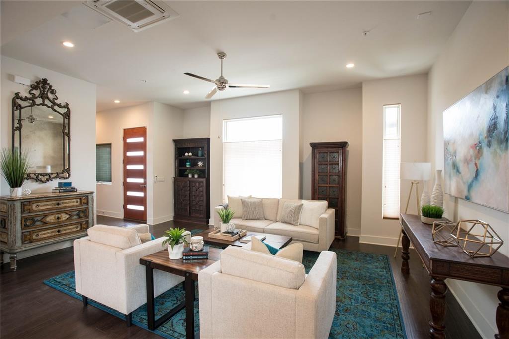 Go off the grid in the middle of Austin in this Mueller luxury lock & leave, 4/4.5, 3160 sf townhome! The most discerning and eco-conscious buyers will love the solar panels, and the Tesla Powerwall battery system capable of powering the whole home! Outdoor space on each of 3 levels: a spacious private courtyard, a balcony off the owner’s suite, and a huge rooftop patio with a wetbar. Kerbey Lane, Alamo Drafthouse just around the corner.