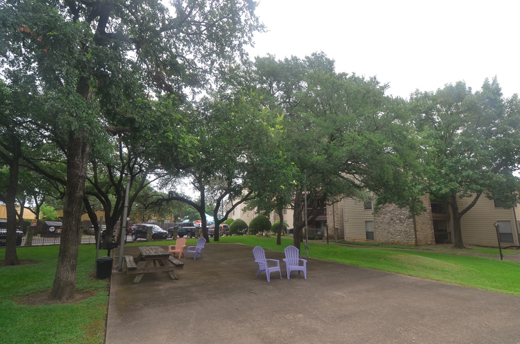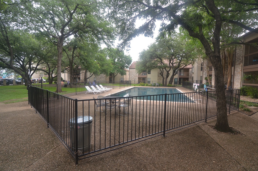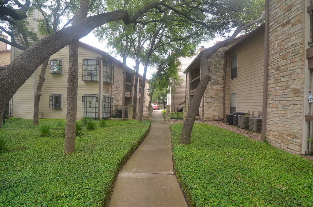 First floor condo in lush complex with relaxing pool area. Unit has mother-in-law plan with a bedroom and full bathroom on either end of the unit. Central living area with fireplace. Hard tile in living and kitchen areas, carpet in bedrooms. Patio facing complex yard. Easy access to 183 and McNeil to Parmer, next to Balcones Country Club.