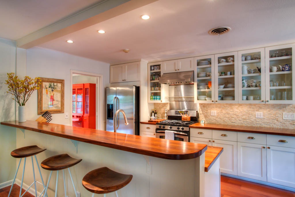 Updated ranch-style home with outdoor oasis and heated mineral pool built for entertaining! Mahogany floors in living, and updated kitchen with solid walnut countertops and glass-front cabinets.