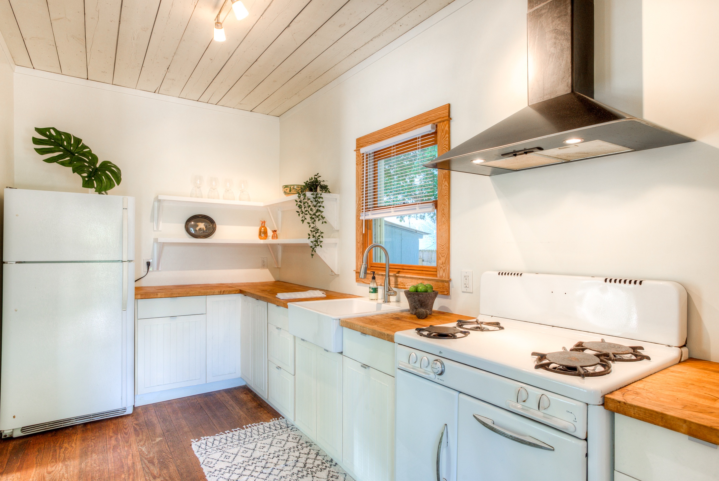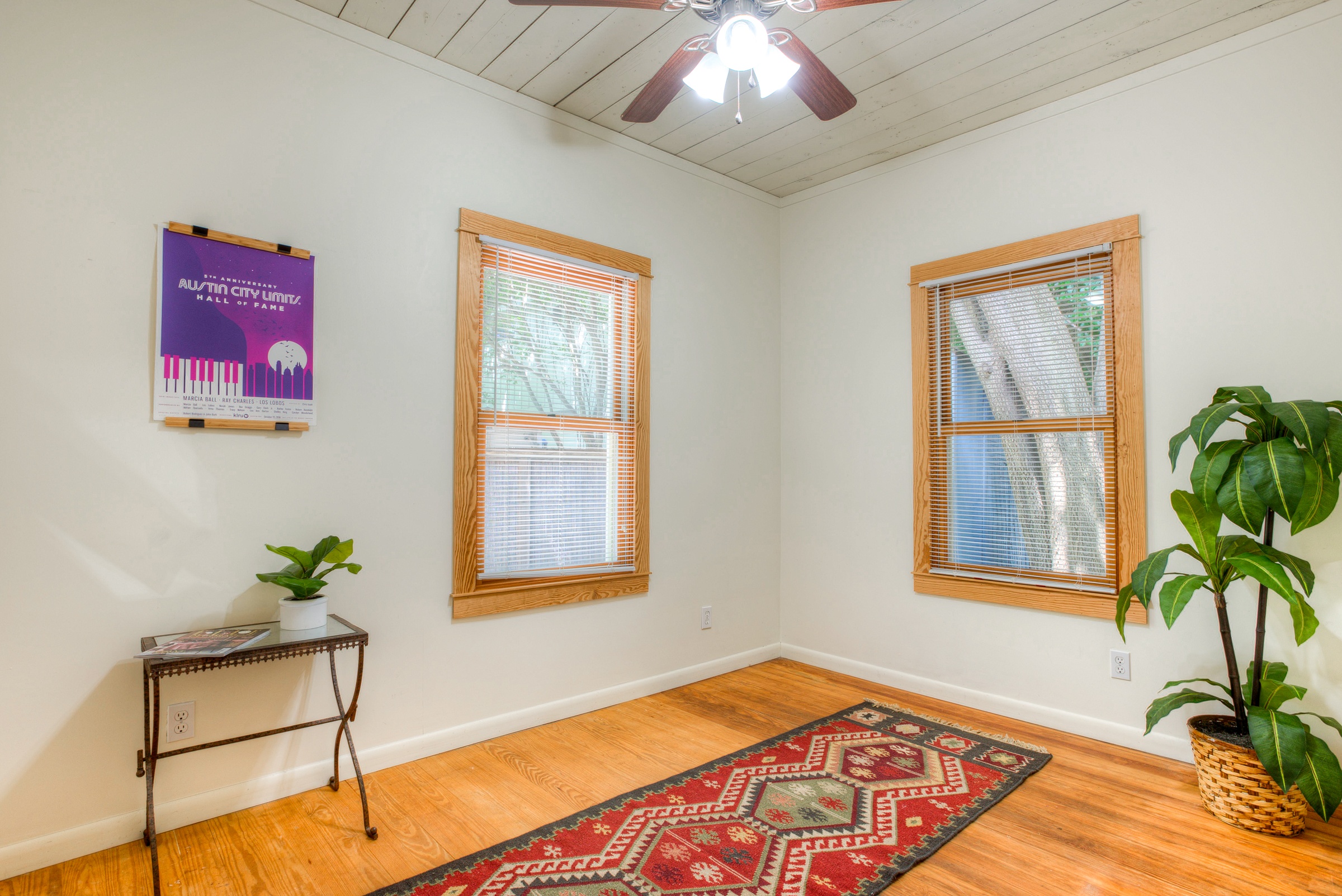 This East Austin Country Casita is a pier & beam home with a stylish remodel including updated energy-efficient windows, custom kitchen with vintage stove & butcher block counter tops, clawfoot tub, and original hardwood floors with 9 ft. shiplap ceilings. A custom steel privacy fence surrounds the front yard with relaxing shade, fruit trees and raised bed garden boxes provide a lovely outdoor space for lounge area and pets. Two blocks from gorgeous Ladybird Lake Hike/Bike Trail, 2 miles from Austin City Limits Live at Moody Theatre and all the fabulous restaurants and boutiques along E Cesar Chavez and coming soon, Whole Foods. Perfect for immediate move-in for you or a tenant and great alternative to condo living!