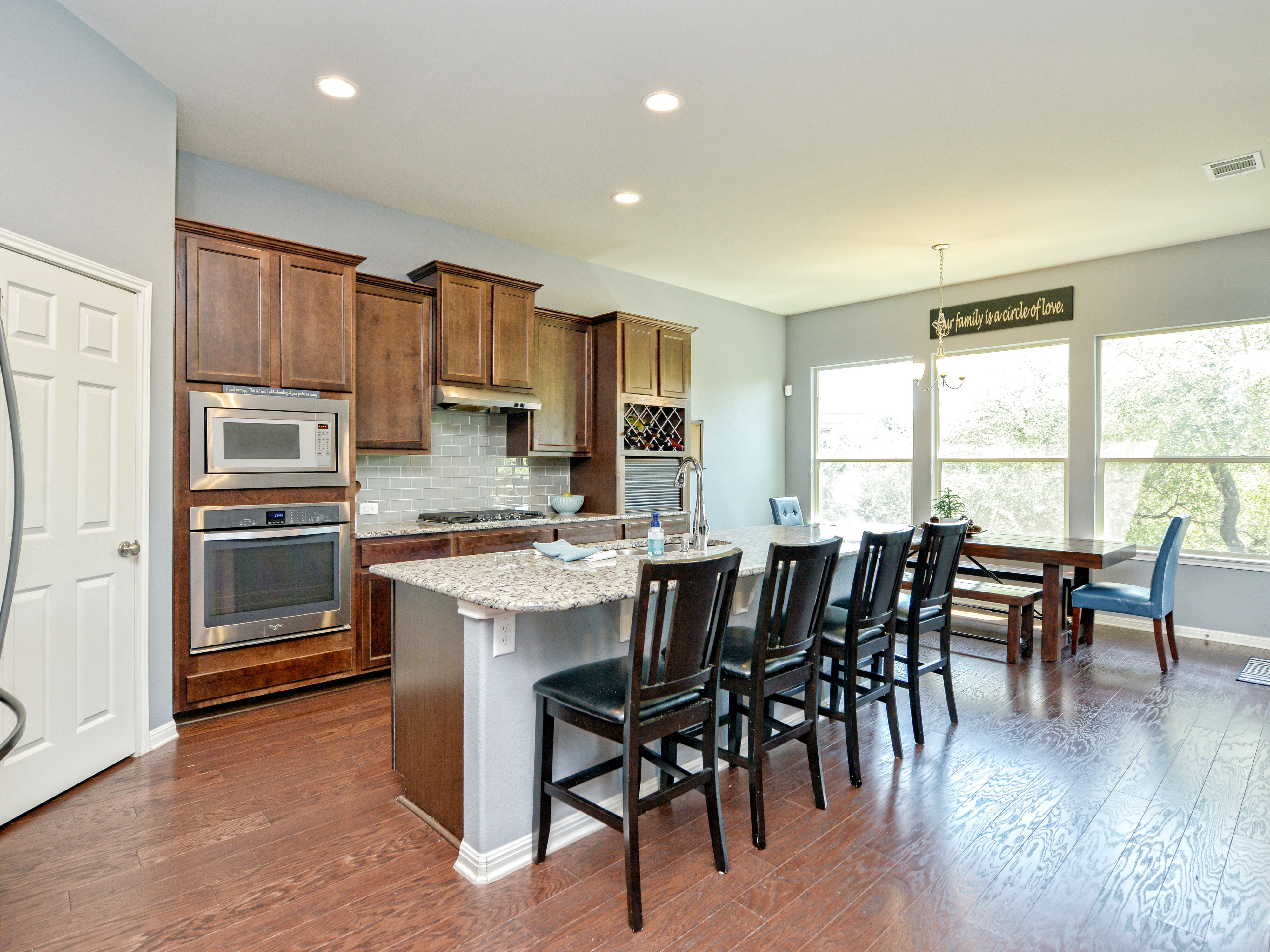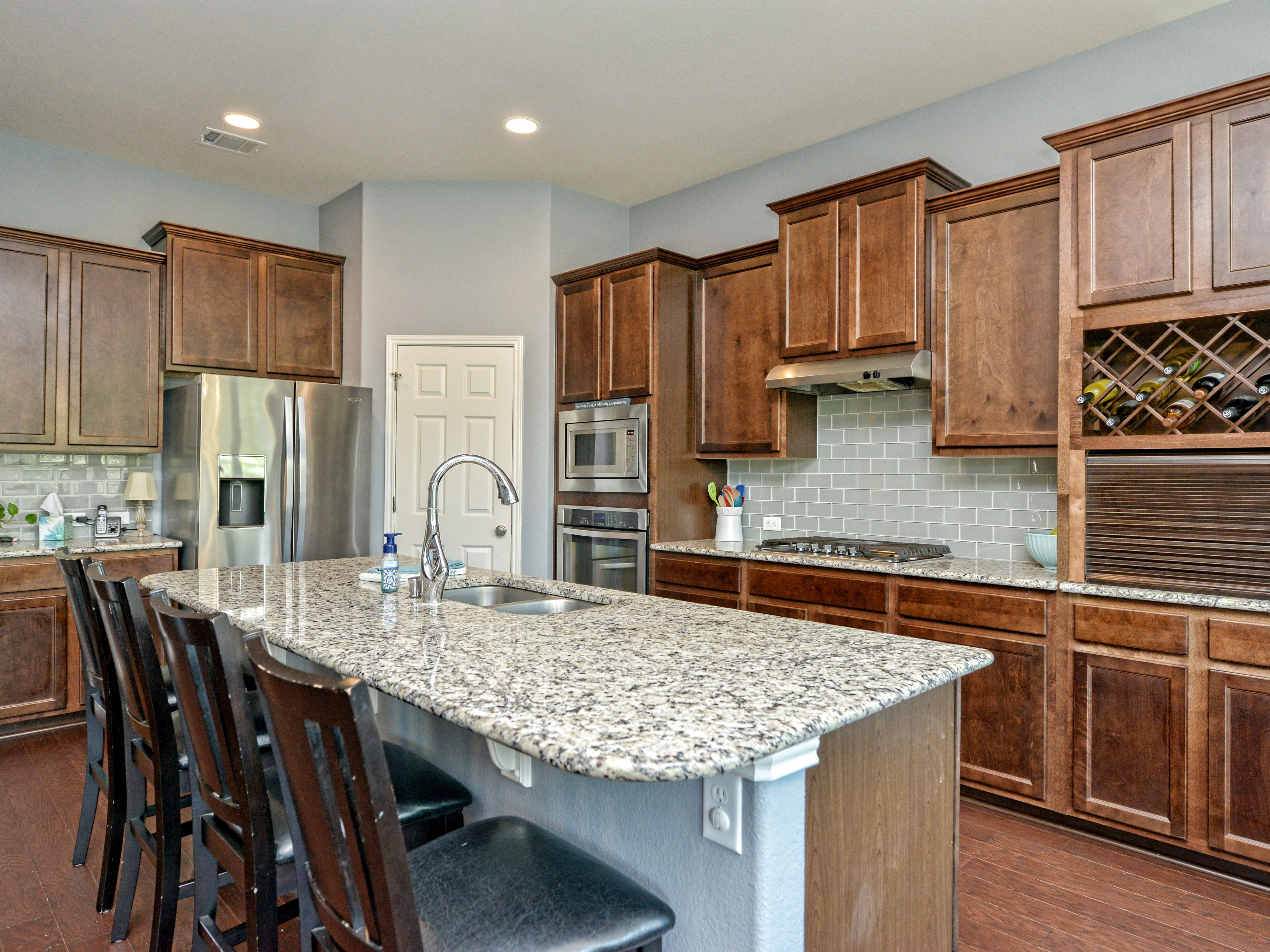 | Spacious West Cypress Hills home 5 bedroom and 3 1/2 baths with greenbelt views in front and back of home. Large kitchen with island opens to living and dining. Second formal dining or living area in front of home. Three bedrooms down including the master suite and two bedrooms upstairs with large game room. Large flat back yard with green belt views and covered porch with built in kitchen. Neighborhood has Amenities Center with pools, park, playground, sports courts and trails.