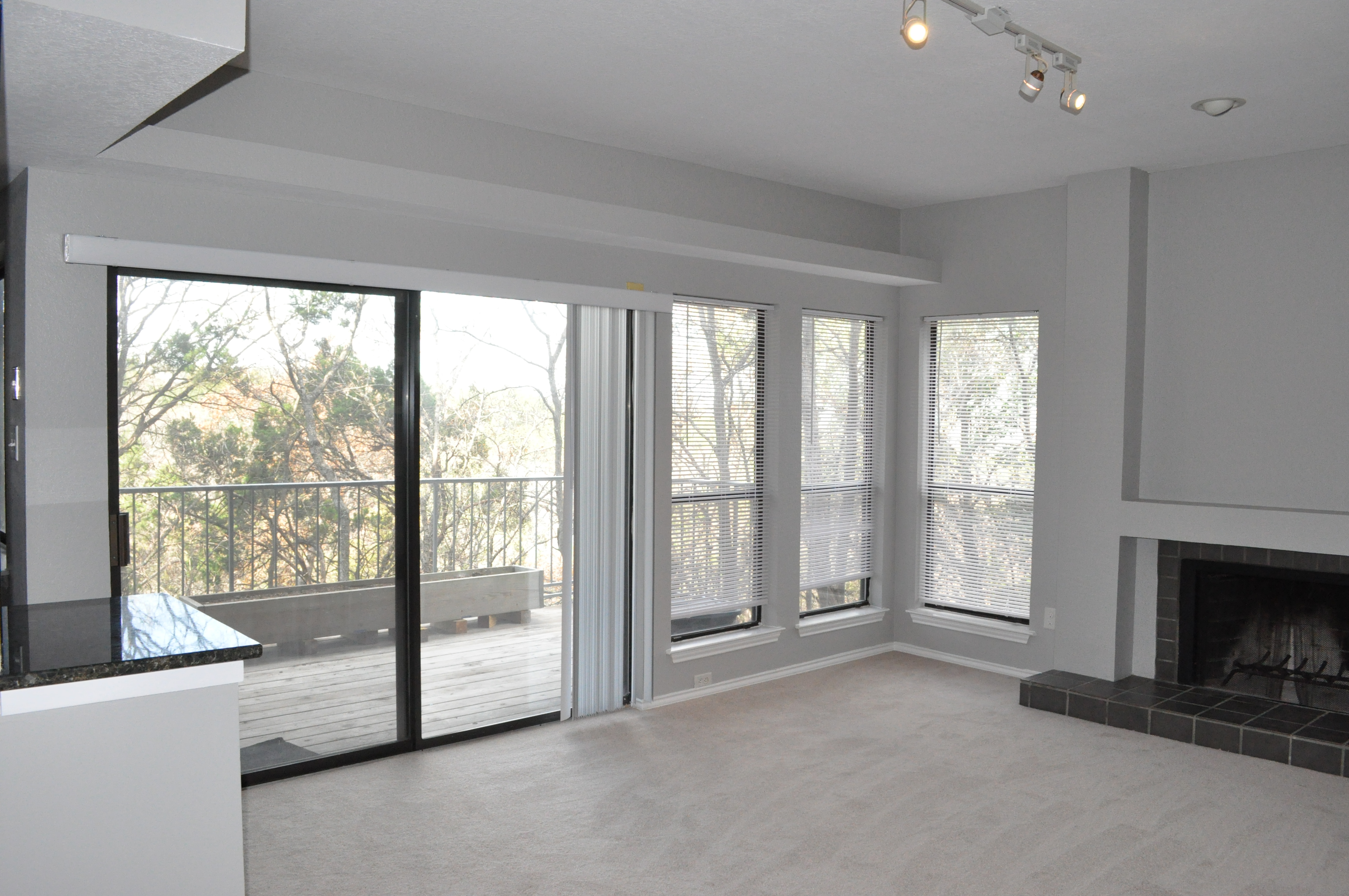 Secluded wooded hideaway with lots of natural light! Condo has new paint, carpet, granite countertops & dishwasher, new refrigerator, & includes washer & dryer. Kitchen has room for breakfast area, & condo includes formal dining area. Living room has fireplace & built-in bookshelves.